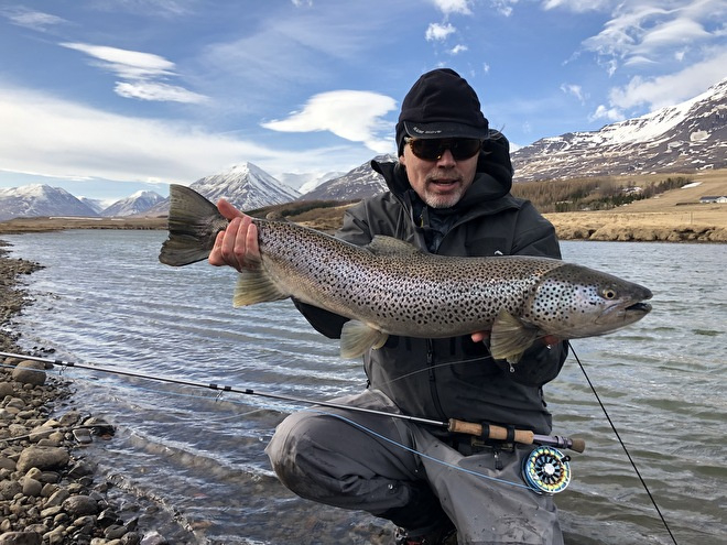 OverviewOver two decades ago I fished Iceland several times. Caught browns, char, atlantic salmon and some smaller sea trout but never anything big. In the logbook of one of the rivers I found notes of big sea trout caught around season opening in April. Always planned to go back but somehow never go to it. Until now! Thanks to my buddy Ad Hulshoff and our friends 'the Icelandic farmers' we had an incredeable trip. I personally caught trophy sea trout over 70cm on all 5 fishing days. 2 were over 80 (81 and 83 to be precise). We fished quarter downstream but it was important to almost dead drift the fly, not swing. Some takes came at the end of the drift too. So if you even go to Iceland to fish for these beauties make sure you rest the fly at the end of the drift for a few seconds. After that trip a few times before making a new cast. We fished small streamers with weighted beads/heads.