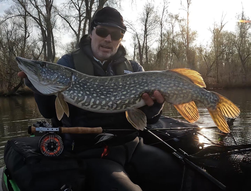 OverviewTowards the season closing the water dropped and got clear. I managed to squeeze one more session in before season ending. March 30, 2022 was not one with a lot of action. In the 6 hour session I got only two bites but landed both fish. A nice pike and a monster fish...playing this fish I was thinking of a personal best pike but when it surfaced I was in for a big surprise as it turned out the be a catfish. Caught it on a wiggle tails streamers using the Airflo Greentooth 9ft #9/10.