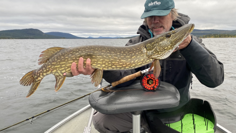 In the spring of 2023 I met Piero from Big Fish Sweden at the EWF show in Germany. He visited the Fly fishing for pike booth and brought a brochure showing his destinations in Sweden. They operate three camps but he specifically talked about the Wild Lake Lodge. High up in Swedish Lapland the camp is on the shore of a huge 120km long shoreline lake holding crystal clear water and lots of pike. Most pike are fished for in the shallows between pebbles and rocks as big as cars. It was not long after the show that we agreed upon dates for a trip to the lake of the pebbles.